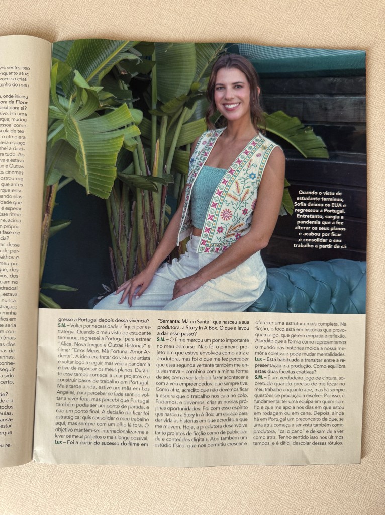 She got to talk about her journey as an actress and producer: her acting training in New York City, her first feature film ALICE, NOVA IORQUE E OUTRAS HISTÓRIAS, her award-winning short-film SAMANTA: MÁ OU SANTA, plans for the future, and her efforts towards making Portuguese cinema more inclusive for deaf and hard of hearing people (see page “About” on this website’s Menu, to know more about Sofia’s active voice on this subject).